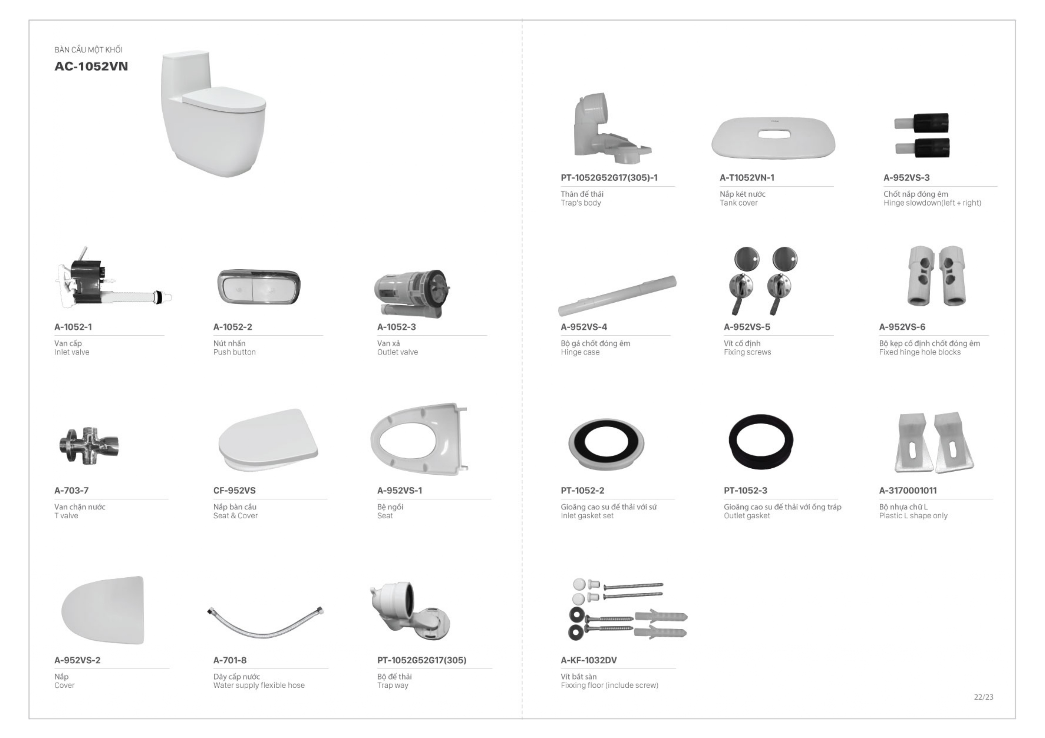 của sản phẩm như dây cấp, nắp nhựa bàn cầu.