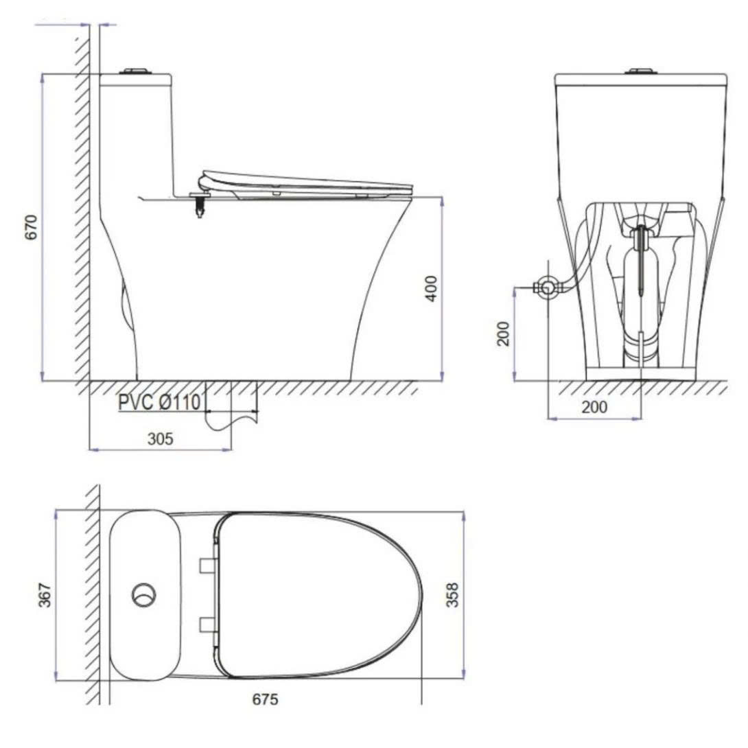 Bản vẽ kỹ thuật Bồn cầu 1 khối Viglacera V829