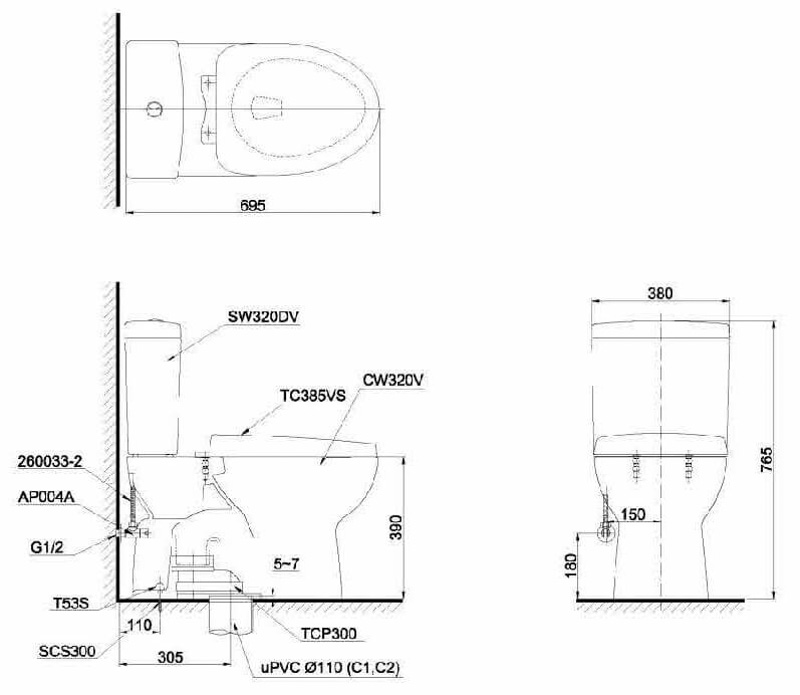 Bổ sung thông tin chi tiết về bệ toilet hai khối TOTO CS320DRT3 nắp rửa đóng êm