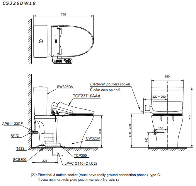 Bồn cầu hai khối TOTO CS326 được tích hợp nắp rửa điện tử WASHLET dòng C2 cơ bản mã TCF23710AAA, tạo nên sự tiện nghi, góp phần nâng cao trải nghiệm vệ sinh của người dùng. Thiết kế hai khối với đường nét tinh giản, cùng màu trắng thanh lịch mang lại vẻ hiện đại cho không gian.