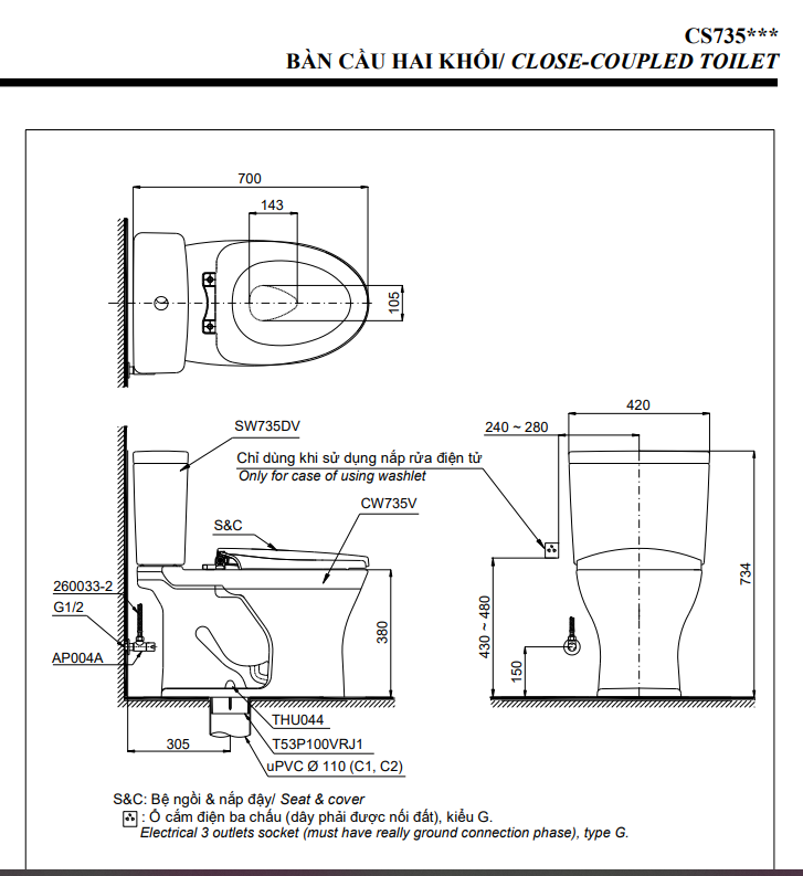 | Phụ kiện kèm theo | Phụ kiện lắp đặt, không bao gồm bích nối sàn, van dừng |