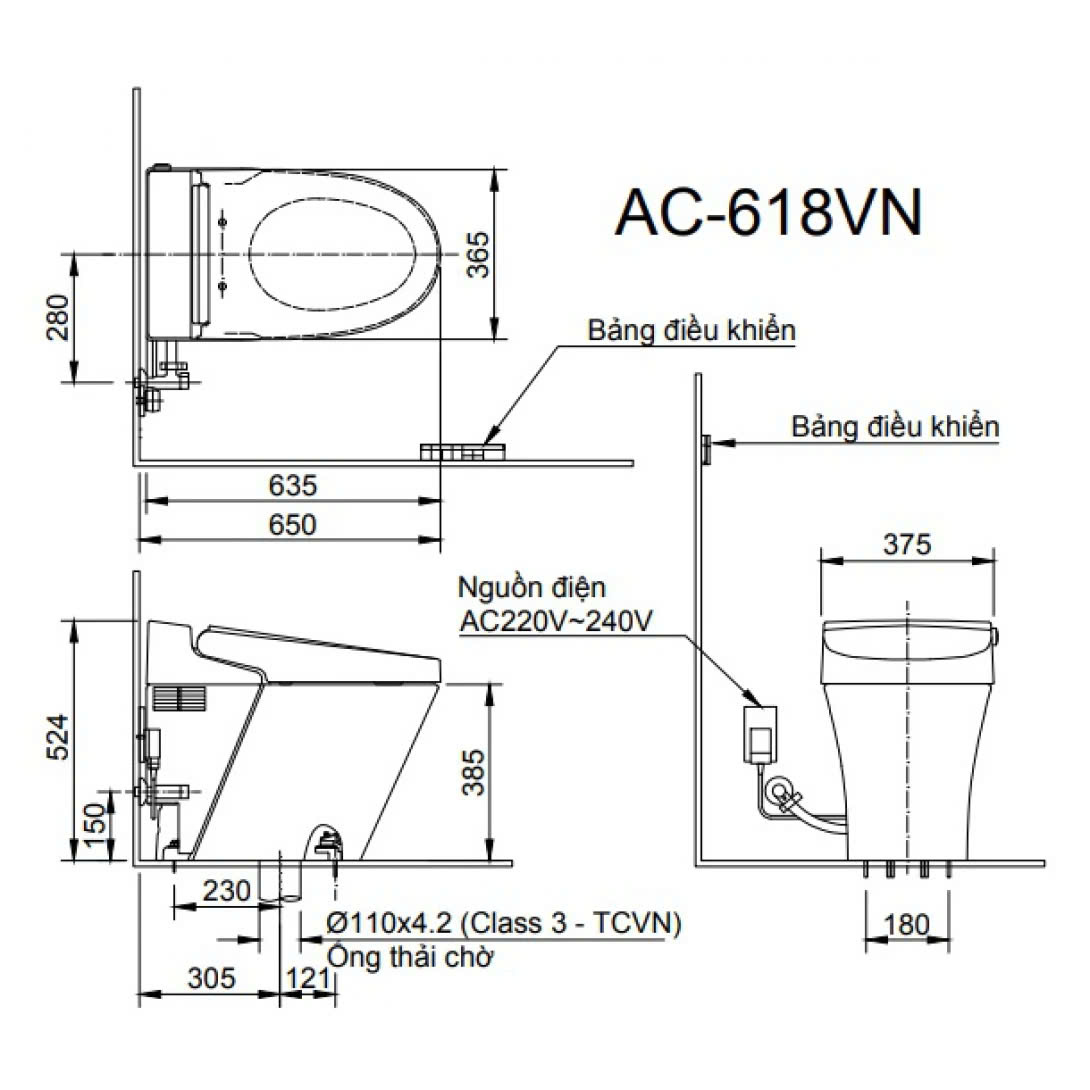 Nút nguồn - Bàn cầu có thể giảm nguồn tự động để tiết kiệm năng lượng.