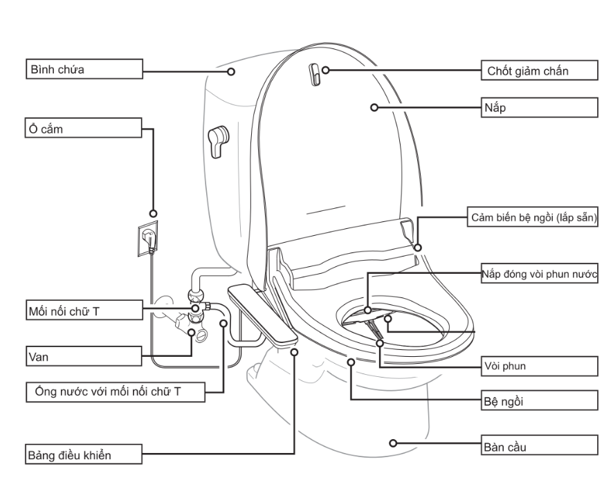 | Chống khuẩn | Bệ ngồi, bảng điều khiển, vòi phun |