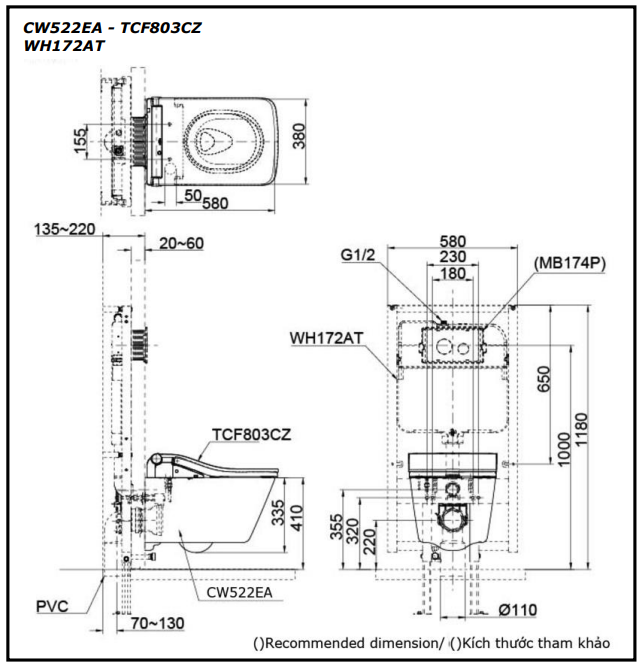 Bồn cầu treo tường TOTO CW522EA#NW1 nắp rửa điện tử TCF803CZ WH172AT. Thiết kế sang trọng với đường nét tinh giản, cùng màu trắng thanh lịch mang lại vẻ hiện đại cho không gian.