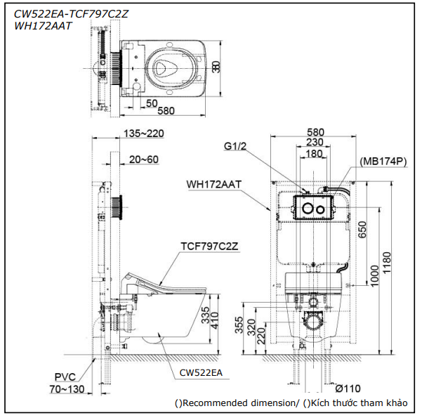 | Phụ kiện kèm theo | Phụ kiện lắp đặt, không bao gồm bích nối sàn, van dừng |