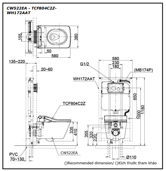 | Phụ kiện kèm theo | Phụ kiện lắp đặt, không bao gồm bích nối sàn, van dừng |