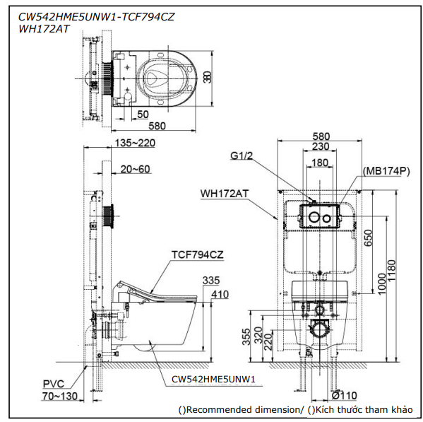 | Phụ kiện kèm theo | Phụ kiện lắp đặt, không bao gồm bích nối sàn, van dừng |