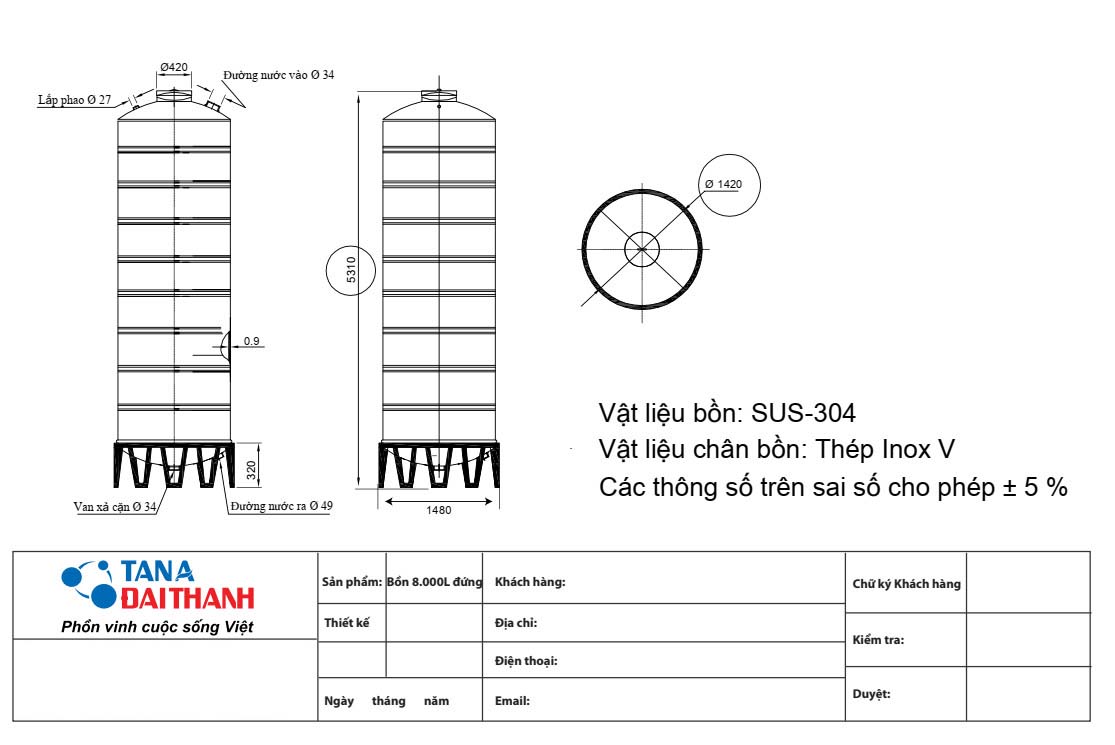 Bồn nước inox 8000 lít đứng Đại Thành I304 là sản phẩm cao cấp đáng đầu tư cho mọi gia đình và cơ sở sản xuất. Từ chất liệu inox SUS 304 bền bỉ, công nghệ dập cổ tiên tiến đến thiết kế tối ưu cho sử dụng và bảo vệ nguồn nước, bồn thể hiện sự vượt trội toàn diện. Đi kèm với chính sách bảo hành dài hạn, sản phẩm xứng đáng là lựa chọn bền vững và an toàn cho tương lai.