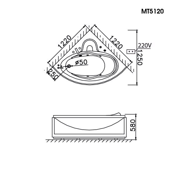 Với kích thước 1210 x 1210 x 580 mm, bồn tắm MT5120 phù hợp với nhiều không gian phòng tắm khác nhau, đặc biệt là những phòng tắm có diện tích hạn chế. Thiết kế nhỏ gọn nhưng vẫn đảm bảo sự thoải mái cho người sử dụng.
