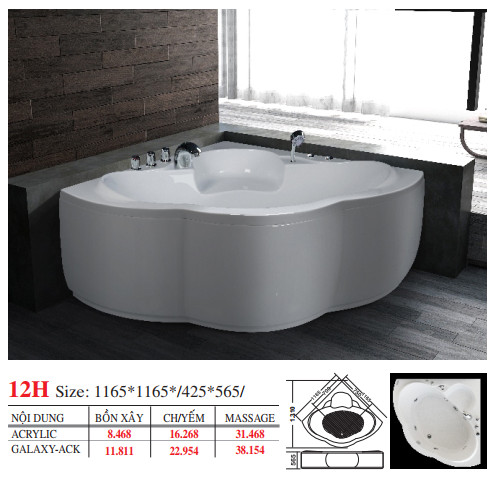 + Bồn tắm massage tương tự như bồn tắm chân đế nhưng có chế độ massage, hệ thống sục thủy, sục khí mạnh mẽ. Giúp massage toàn bộ cơ thể, đem đến sự thoải mái nhất cho người dùng. Có phích cắm như các thiết bị điện bình thường, cần thi công đường điện. Đã bao gồm tất cả các phụ kiện tay sen vòi tắm. Cần xác định vị trí đặt bồn tắm để xác định yếm của bồn cho chính xác.