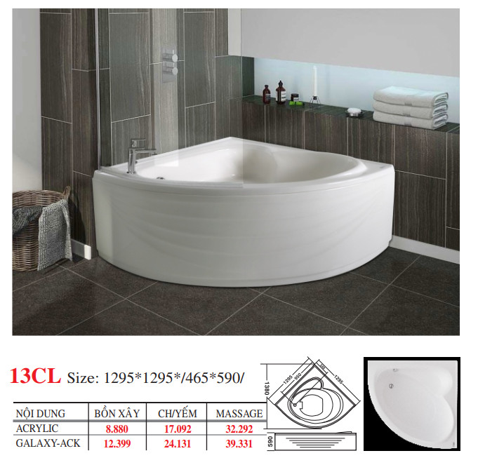 + Bồn tắm xây là bồn tắm chỉ có phần mặt trên của bồn tắm, phải thi công đúng kích thước quý khách đã chọn mới sử dụng được.