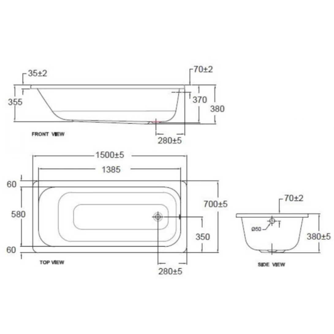 Bản vẽ kích thước bồn tắm nằm 70280 American 1.5 mét