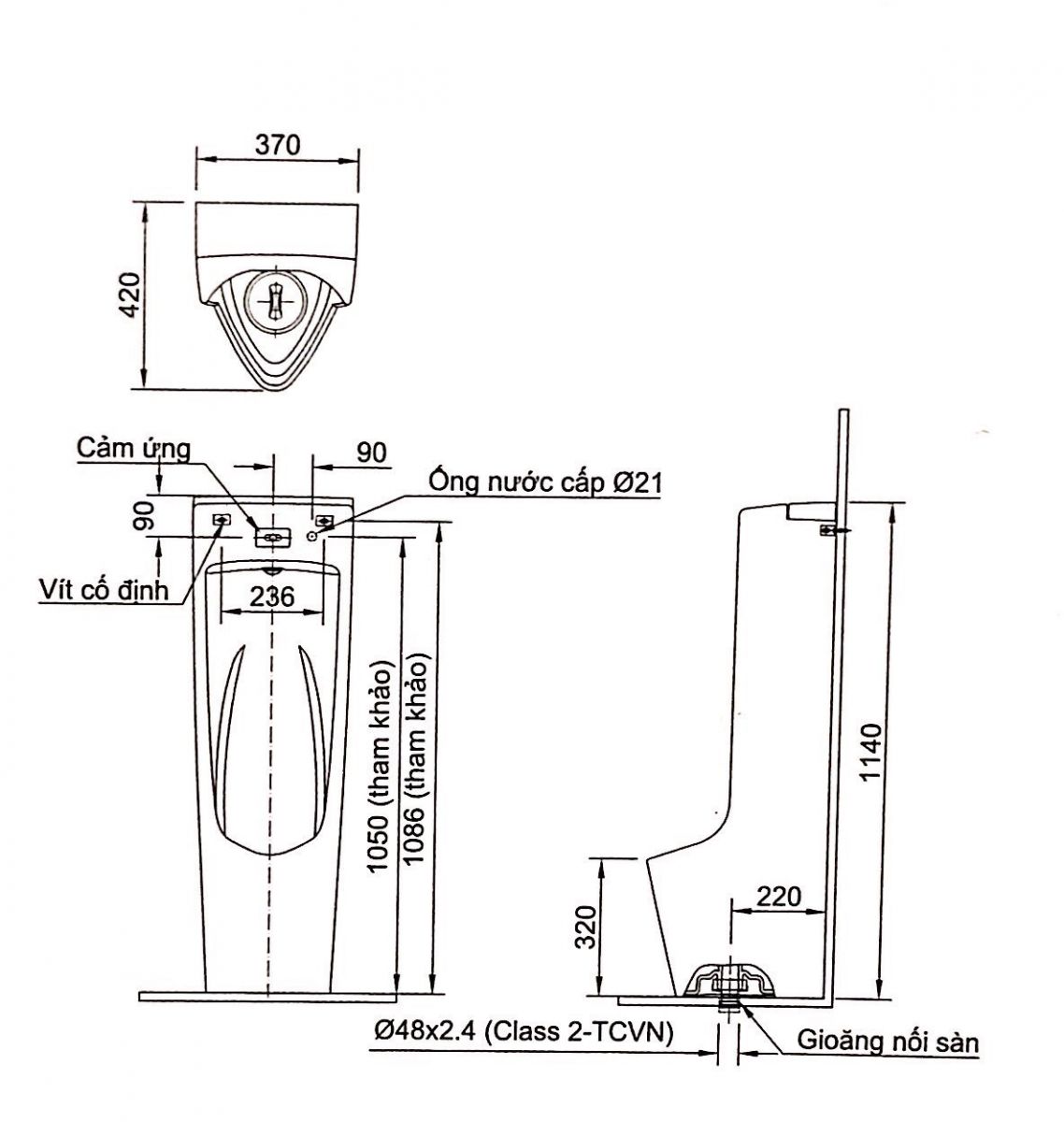 Loại | Bồn tiểu nam đặt sàn, cảm ứng |