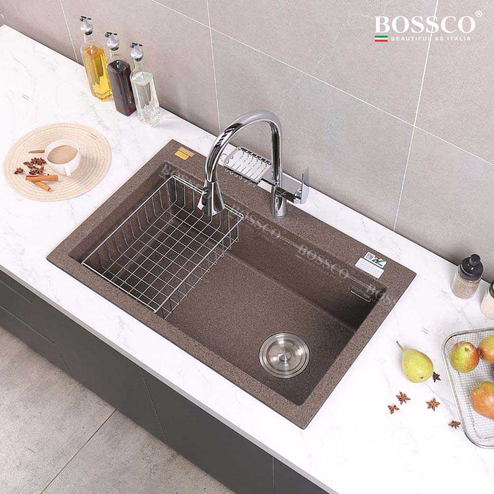 Giới thiệu Chậu rửa chén đá BOSSCO BC-B8252NKS 1 hộc