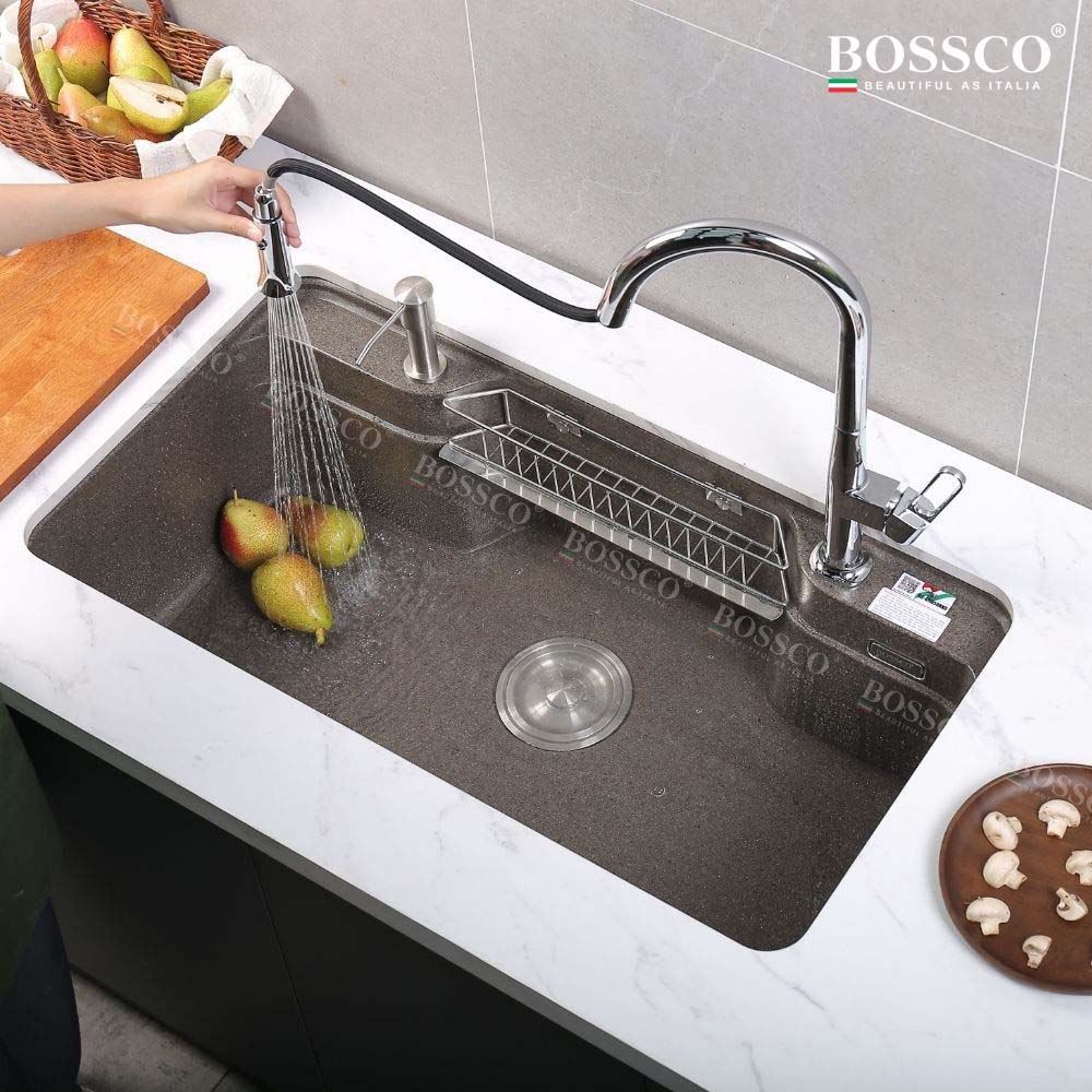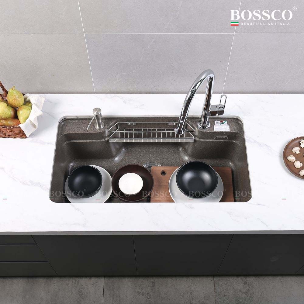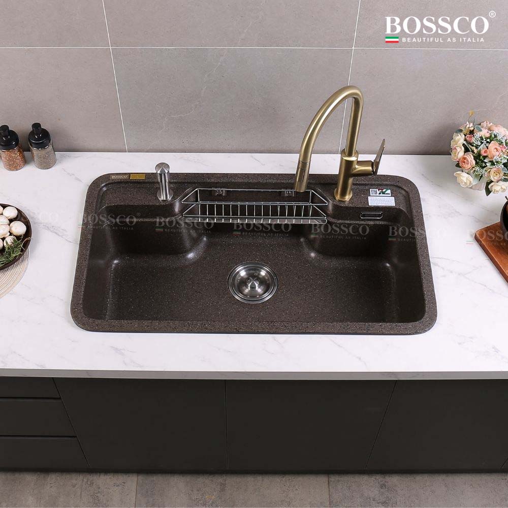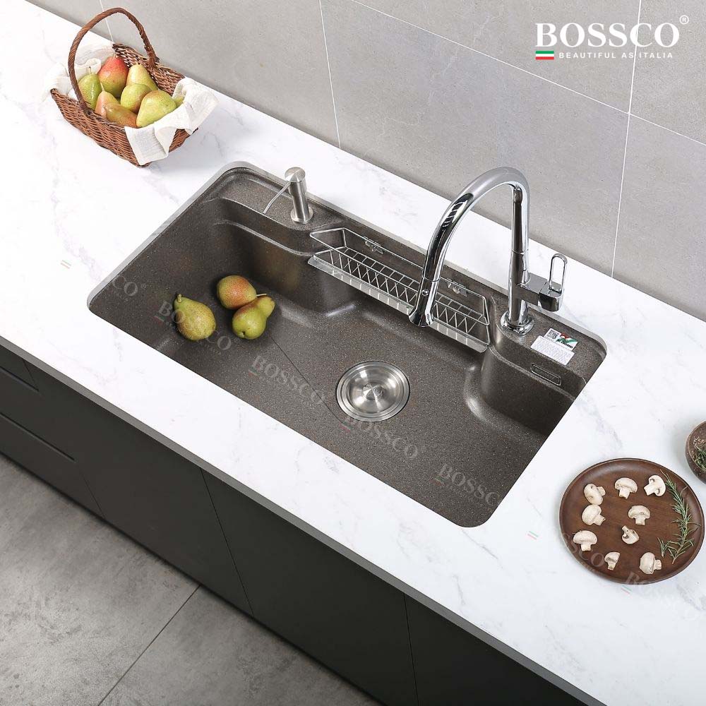Chậu rửa chén đá BOSSCO BC-G9050NKS 1 hộc bo góc là lựa chọn lý tưởng cho những gia đình cần một mẫu chậu bền bỉ – an toàn – dễ vệ sinh – thẩm mỹ cao. Với chất liệu Granite nhập khẩu Italia, thiết kế bo góc tinh tế, màu nâu kim sa sang trọng cùng bộ phụ kiện đầy đủ, sản phẩm mang đến trải nghiệm sử dụng tiện nghi và bền đẹp theo thời gian cho mọi không gian bếp.
