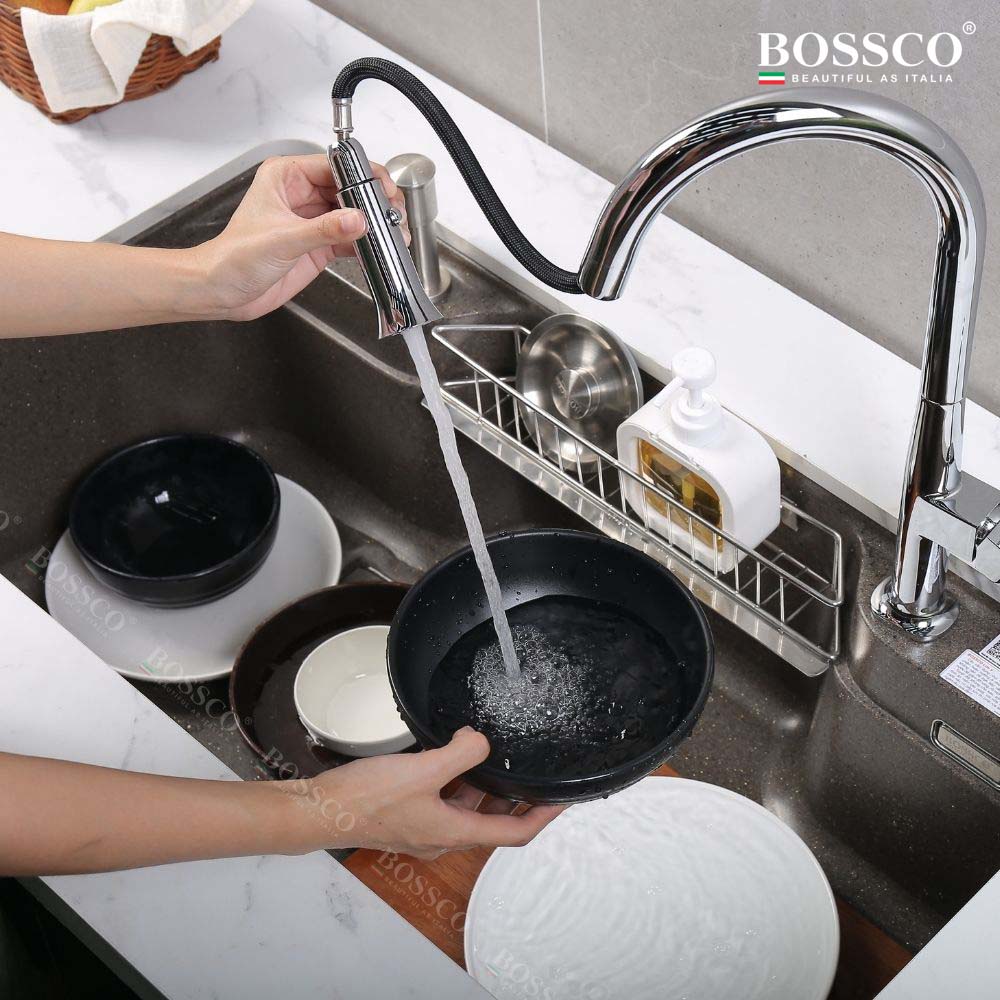 Thoải mái rửa xoong nồi lớn, hạn chế nước bắn ra mặt bếp và sàn bếp.