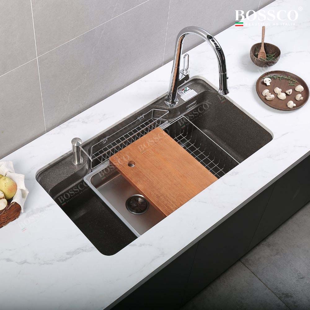 Chậu rửa chén đá BOSSCO BC-G9050NKS 1 hộc bo góc là mẫu chậu Granite cao cấp đến từ thương hiệu BOSSCO ITALIA, nổi bật với thiết kế 1 hộc rộng rãi kết hợp bo góc mềm mại, mang lại sự an toàn, thẩm mỹ và tiện nghi cho không gian bếp hiện đại. Sản phẩm có kích thước 900 × 500 × 250 mm, phù hợp với nhiều kiểu tủ bếp phổ biến hiện nay, từ căn hộ chung cư đến nhà phố.