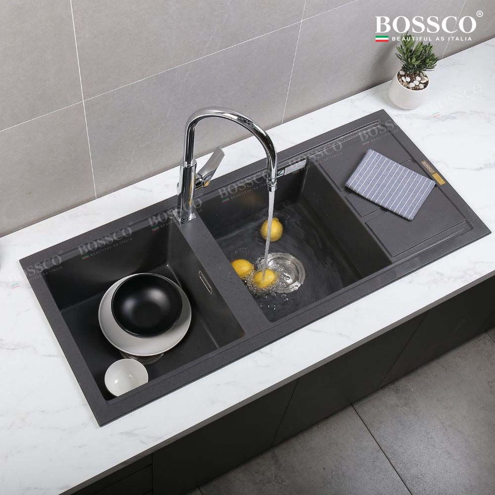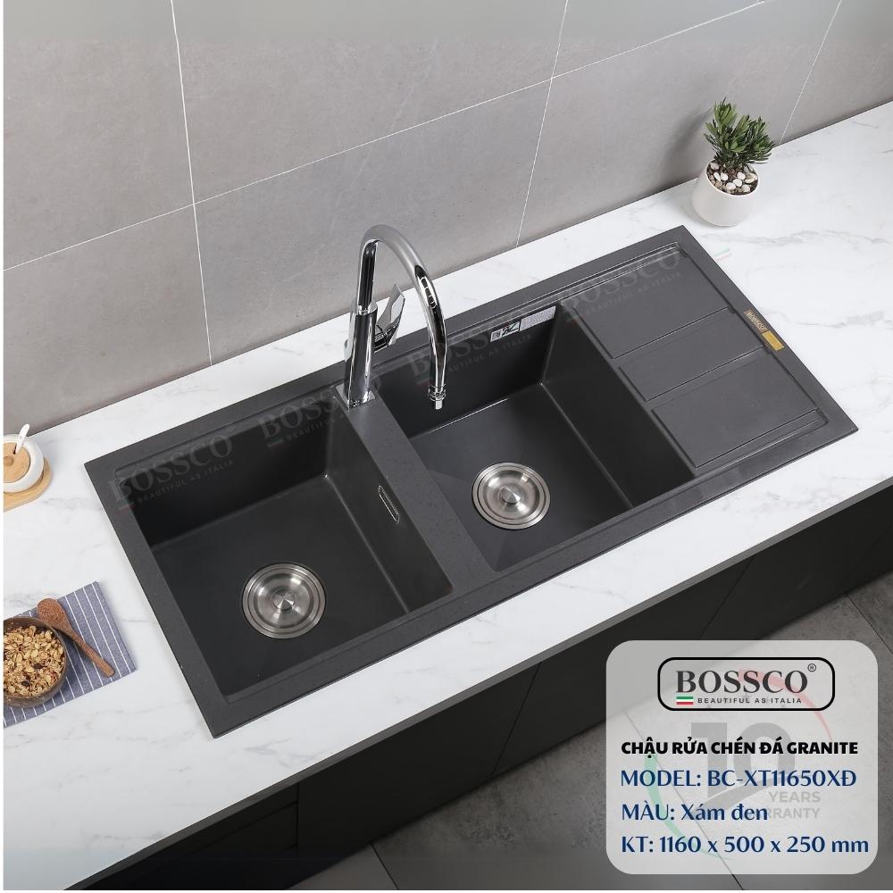 Chậu rửa chén đá BOSSCO BC-XT11650XĐ 2 hộc cánh là giải pháp hoàn hảo cho những gia đình muốn sở hữu một mẫu chậu đá sang trọng – tiện dụng – bền bỉ. Với thiết kế hai hộc rửa phân vùng hợp lý, chất liệu Granite nhập khẩu Ý, màu xám đen mạnh mẽ cùng độ bền vượt trội, sản phẩm không chỉ đẹp về thẩm mỹ mà còn cực kỳ hiệu quả trong quá trình sử dụng hằng ngày.
