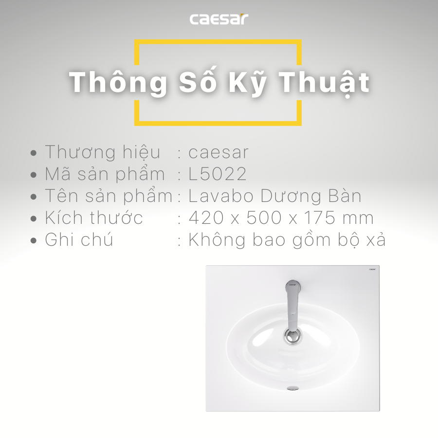 Với thiết kế sang trọng, chất liệu bền bỉ và nhiều tính năng tiện ích, lavabo Caesar L5022 là lựa chọn hoàn hảo cho phòng tắm hiện đại. Sản phẩm không chỉ đáp ứng nhu cầu sử dụng mà còn giúp không gian trở nên sang trọng và tiện nghi hơn.