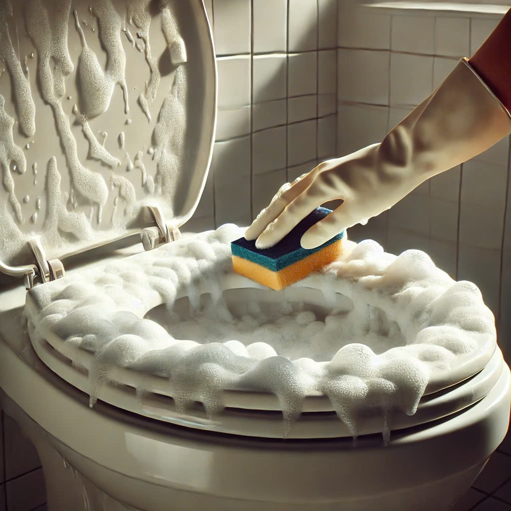 ✔️ Dùng nước tẩy bồn cầu hoặc giấm + baking soda để khử khuẩn.