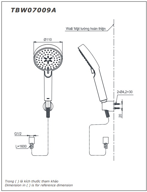 - Đường kính: 110 mm