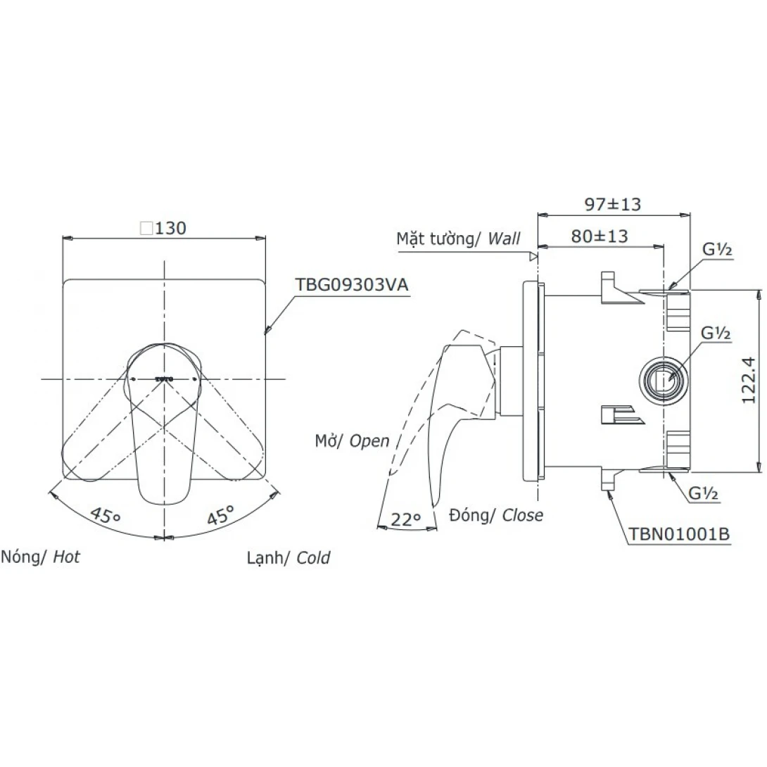 - TBG09303V: Van điều chỉnh nước nóng lạnh