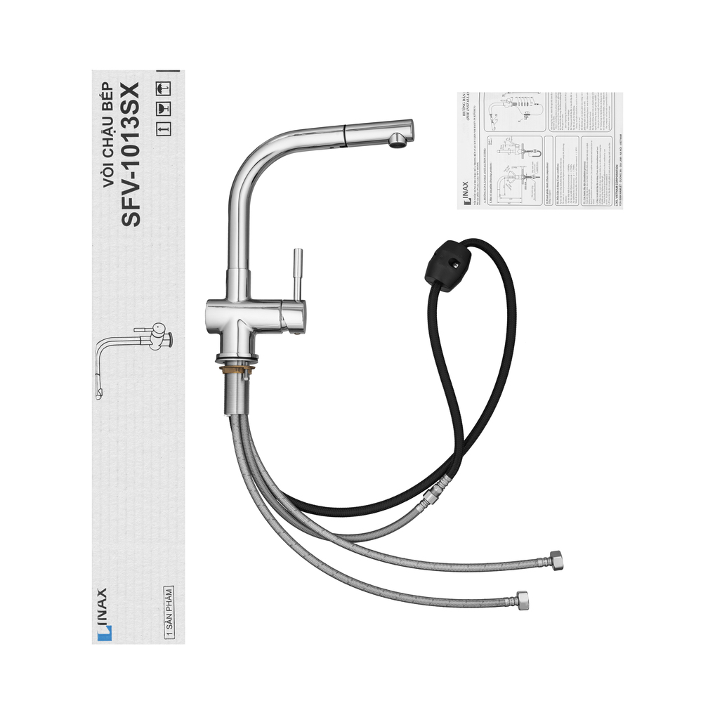 Vòi chậu rửa chén INAX SFV-1013SX đa năng nóng lạnh là giải pháp hoàn hảo cho mọi gian bếp hiện đại. Với thiết kế chữ L cao cấp, đầu vòi kéo tiện lợi, chức năng xoay rộng và chất liệu bền bỉ, sản phẩm mang lại sự thoải mái, an toàn và tiết kiệm cho người dùng trong từng thao tác nấu nướng và rửa chén hằng ngày.