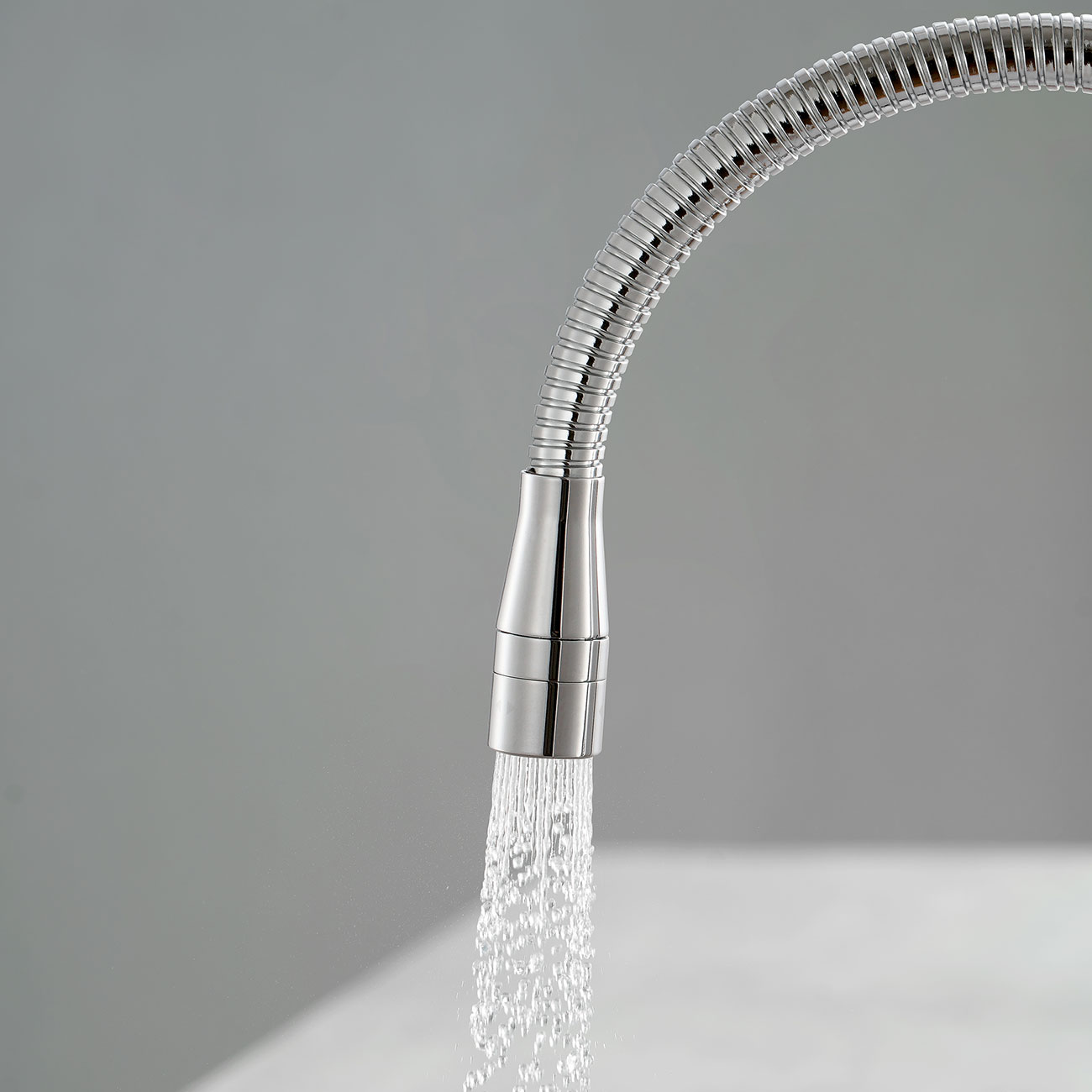 Nổi bật | Vòi cần mềm có thể uốn theo nhu cầu, dễ dàng chạm đến mọi ngóc ngách trong bồn rửa. Đầu vòi có 2 chế độ phun, phun mưa để rửa thực phẩm và phun mạnh để cọ rửa bồn |