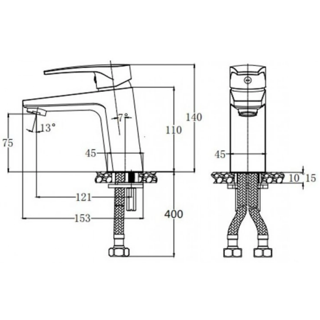 Bản vẽ kỹ thuật Vòi lavabo chậu rửa mặt Caesar B390CRU nóng lạnh: