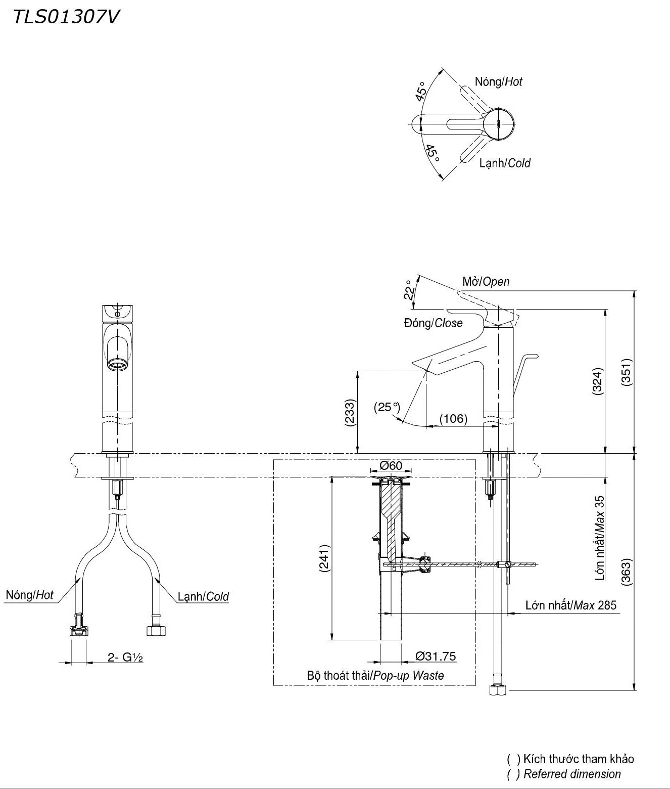 | Dây cấp | Bao gồm dây cấp nóng lạnh |