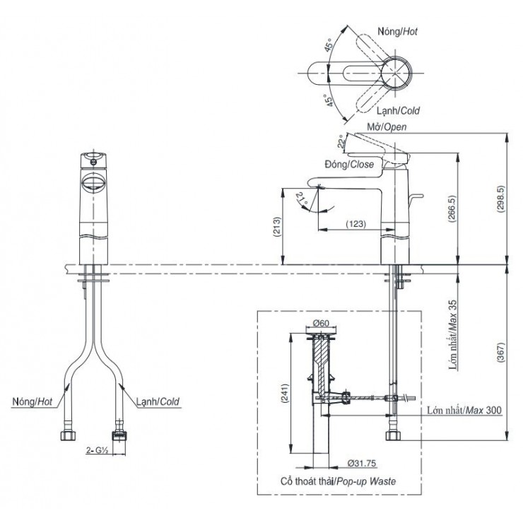 | Dây cấp | Bao gồm dây cấp nóng lạnh |