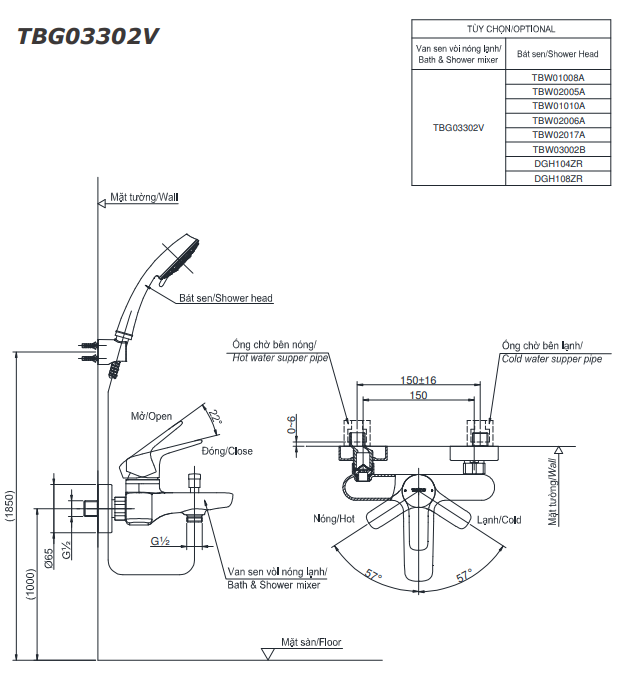 Giới thiệu Bộ vòi sen tắm TOTO TBG03302VA/DGH104ZR nóng lạnh
