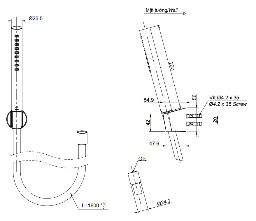 Gác sen đi kèm, dễ dàng lắp đặt. (Không bao gồm cút nối tường)