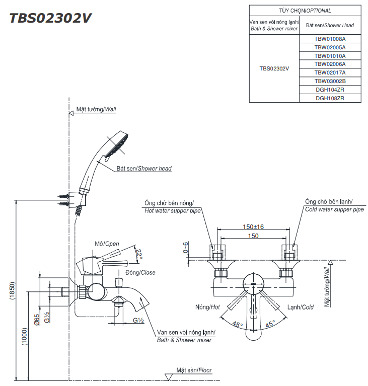 Giới thiệu Bộ vòi sen tắm TOTO TBS02302V/DGH104ZR nóng lạnh